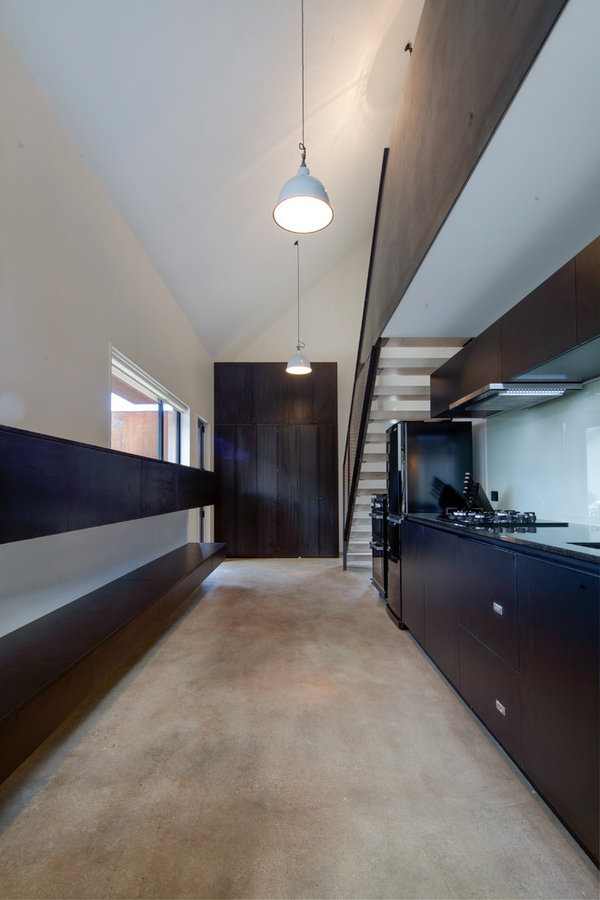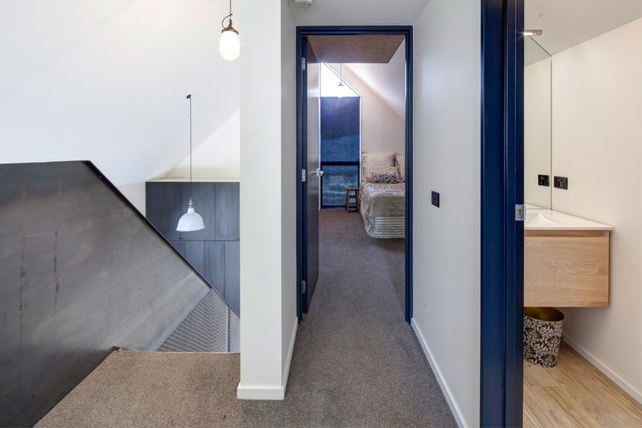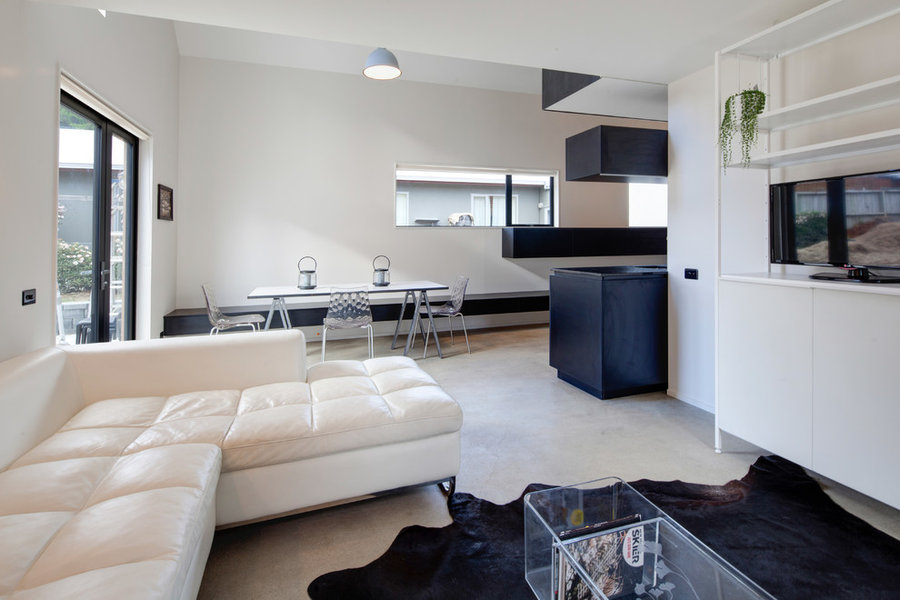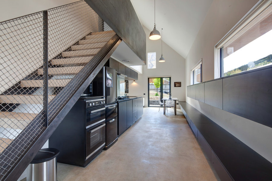 Full interior project, which has since been improved further with adding more warm furnishings. A Scandinavian inspired project, adding steel stair details and a kitchen design that cleverly used a thoroughfare space and created a feature kitchen. The high voids have enhanced this wee chalet style house and created a cleaver small home that has all the spaces needed for a small family to function.